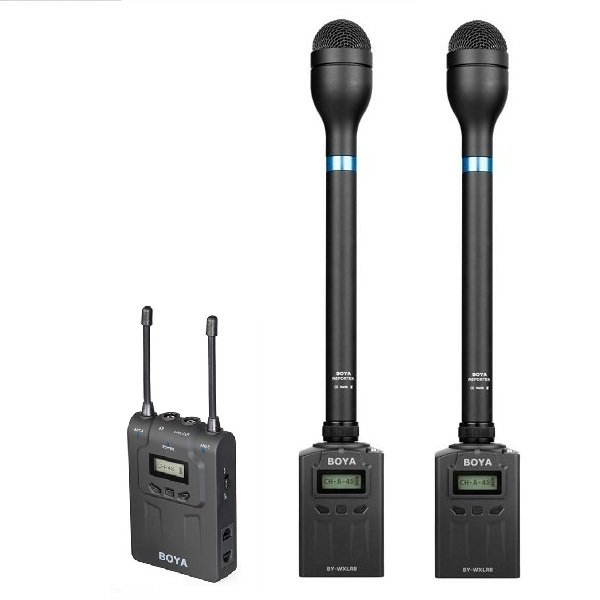 • Беспроводная двухканальная радиосистема Boya BY-WM8-K11  (кит BY-WM8R + BY-WXLR8 2шт) + BY-HM100 2шт)