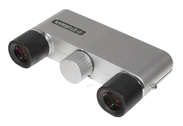 Бинокль Sturman 5x12 выполнен на схеме с Roof призмами, что и обеспечивает ему компактные размеры и отсутствие неудобных изгибов и выступов. Для того, чтобы изображение было ярким и насыщенным, на поверхности всех линз и призм нанесено многослойное просветляющее покрытие. Прочный и лёгкий пластиковый корпус окрашен в цвет "шампань". На корпусе есть петелька для крепления маленького ремешка на запястье, чтобы случайно не выронить бинокль, ремешок входит в комплект поставки. Удобный и такой же компактный бархатный футляр также входит в комплект.