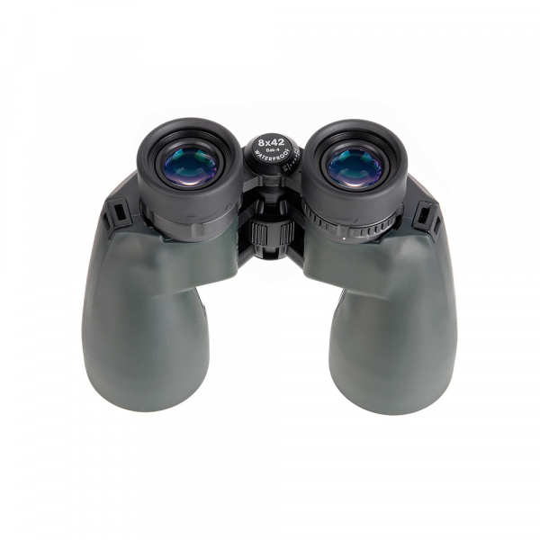 С помощью диоптрийной настройки можно корректировать различия в силе зрения между левым и правым глазами и настроить бинокль под индивидуальные особенности зрения. Диоптрийное кольцо находится на правом окуляре, вращается с очевидным усилием и не имеет выступающих частей - что помогает предотвратить случайные изменения настройки. 4-х линзовые окуляры (выходные линзы окуляров имеют диаметр 24 мм) обеспечивают широкий угол обзора и яркую, равномерно освещённую картинку без малейшей расфокусировки или искривления наблюдаемых вертикальных линий по краям поля зрения.