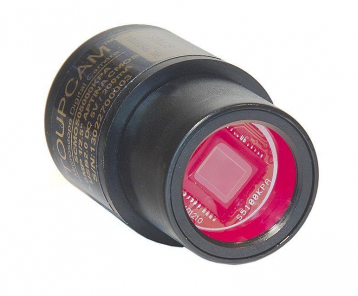 Поддерживаются программы для обмена текстовыми / видео сообщениями (Skype и пр.) в режиме реального времени. Для естественной цветопередачи изображения используются предустановки, автоматически корректирующие баланс белого и параметры экспозиции в процессе работы цифровой камеры. При необходимости можно вручную изменять такие параметры изображения как яркость, контраст и насыщенность цвета. Матрица с максимальным разрешением 2592 х 1944 пикс (размер пикселей 2,2 х 2,2 мкм) обеспечивает чёткое изображение с качественной прорисовкой деталей. Корпус цифровой камеры ToupCam SCMOS05000KPA выполнен из прочных алюминиевых сплавов, окрашен в чёрный цвет. Встроенный IR-CUT (инфракрасный) фильтр отсекает всё инфракрасное излучение от 700 - 750 нм, обеспечивая оптимальный цветовой баланс изображения. Поле зрения у всех камер SCMOS соответствует примерно окуляру 32x (поле измерялось на микроскопе Levenhuk 50L NG).