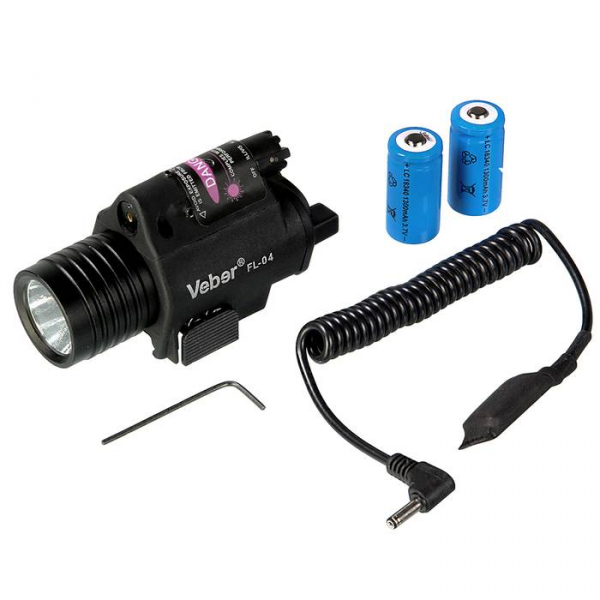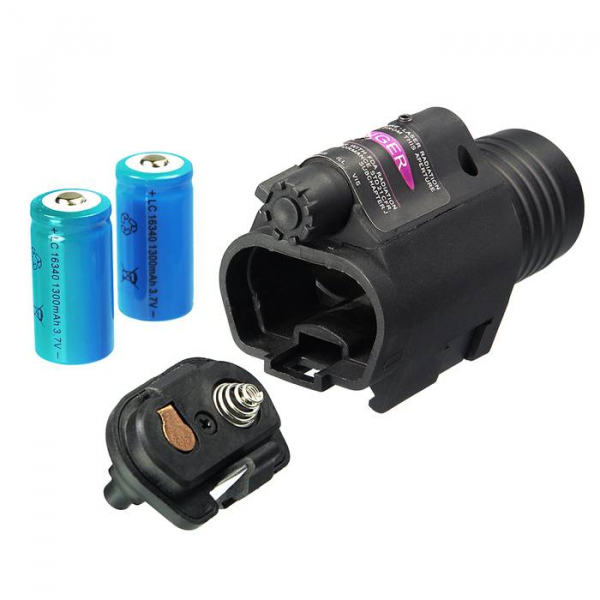 Компактный вариант изделия по принципу 2 в 1. Корпус изготовлен из жесткого пластика, по внешнему виду и прочности даже не отличимым от силумина. Задняя крышка закрывает батарейный отсек, на ней же расположены кнопка включения и гнездо для выносной кнопки (длина шнура — 1 метр). На верхней части корпуса — ручка переключения режимов. Режимы: Выкл, лазер + фонарь, фонарь, лазер. Асферическая поверхность отражателя светодиода фонаря, формирует световой поток с ярким пятном в центре и большой периферийной зоной, что удобно для ориентировки. Оси фонаря и лазера строго параллельны (однако, предусмотрена возможность регулировки направления луча лазера), поэтому при совместном использовании, лазерная точка находится в центре светового пятна от фонаря. Крепление под Weaver. Закрепление устройства осуществляется путем нажатия на подпружиненную площадку прибора в основании корпуса. Обычное (не влагозащищенное) исполнение. Рекомендованное применение — легкая пневматика, пейнтбол, арбалеты и т. п.