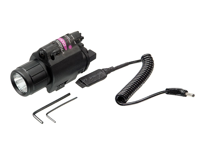 Режимы: Выкл, лазер + фонарь, фонарь, лазер. Асферическая поверхность отражателя светодиода фонаря, формирует световой поток с ярким пятном в центре и большой периферийной зоной, что удобно для ориентировки. Оси фонаря и лазера строго параллельны (однако, предусмотрена возможность регулировки направления луча лазера), поэтому при совместном использовании, лазерная точка находится в центре светового пятна от фонаря. Крепление под Weaver. Обычное (не влагозащищенное) исполнение. Рекомендованное применение — легкая пневматика, пейнтбол, арбалеты и т. п. Примечание: во избежание пропадания контакта, всегда очень тщательно и аккуратно закрывайте крышку батарейного отсека, следя за точным совмещением ответных частей.