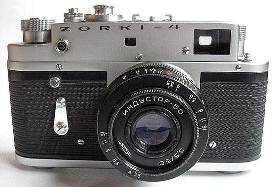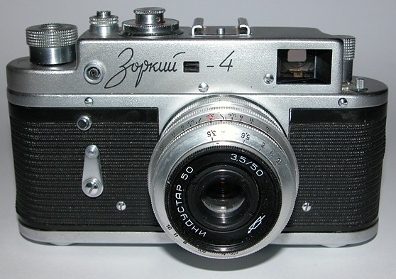 Фотоаппарат Зоркий-4 с объективом Индустар-50 представляет собой советский дальномерный фотоаппарат, который выпускался Красногорским механическим заводом (КМЗ) в период с 1956 по 1973 год, причем ранние варианты считаются наиболее качественными, в сравнении с моделями 1970-х годов. Считается самой технически совершенной моделью среди фотоаппаратов марки Зоркий. Фотоаппарат Зоркий-4 имеет металлический корпус, со съёмной задней стенкой. Взвод затвора и перемотка плёнки производятся вращением заводной головки, причем установка выдержки возможна только при взведённом затворе. Выпускался в нескольких вариантах с различными объективами, данная модель представляет собой менее дорогостоящий вариант.