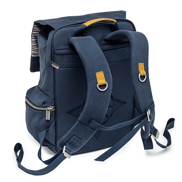 Новая Средиземноморская коллекция. Сочетание глубокого синего цвета со светло-серымии полосками и вставками из натуральной кожи добавляют нотку свежести и создают оригинальный стиль каждой сумке. Небольшой двухзонный рюкзак. Верхняя часть предназначена для различных аксессуаров и личных вещей. Нижняя защищенная часть (13х22х17 см) для зеркальной камеры с установленным объективом, дополнительного объектива и вспышки. В спинке рюкзака расположен отсек для 13` ноутбука. Два боковых кармана на молнии. Ремень для фиксации небольшого штатива. Мягкая спинка рюкзака и эргономичные лямки обеспечивают комфортное использование. Размеры внешние 40х28х19 см, внутренние 38х26х17 см.