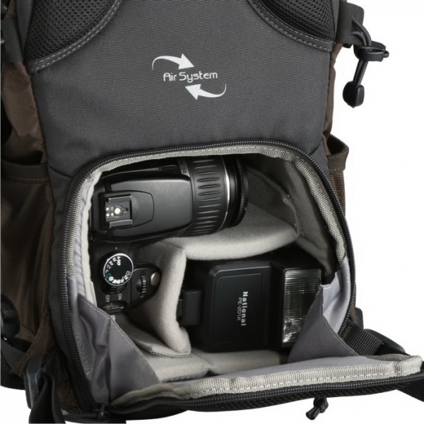 • Вместимость: зеркальная камера с объективом + вспышка + аксессуары + мини-планшет + штатив или монопод