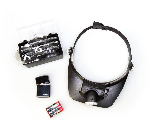 Налобная лупа Veber 81001-3Led представляет собой головное увеличительное стекло широкой площади обзора с применением трехмерных линз и встроенным светодиодным осветителем. Питание осуществляется батареями типа AAA.