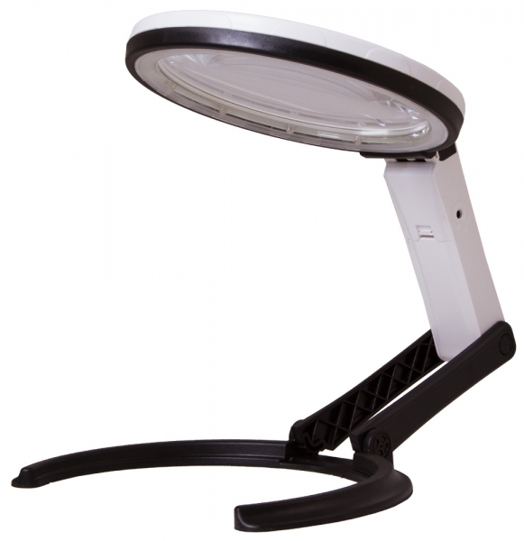 Настольная лупа Levenhuk Zeno Desk D13 – отличный выбор для чтения, рукоделия, моделирования, часовых и ювелирных работ. Благодаря линзе большого диаметра работать с протяженными объектами легко и удобно. А складной штатив позволяет быстро превратить Levenhuk Zeno Desk D13 из настольной в лупу на ручке. Встроенная светодиодная подсветка пригодится для работы в условиях слабой освещенности. Светодиоды расположены по периметру линзы. Всего их 12, и они создают ровное и яркое освещение. Работать можно даже в полной темноте. Для питания подсветки используются батарейки или сеть переменного тока. Линза бифокальная и сделана из оптического пластика. Предметы можно изучать на увеличении в 1,8 или 5 крат.