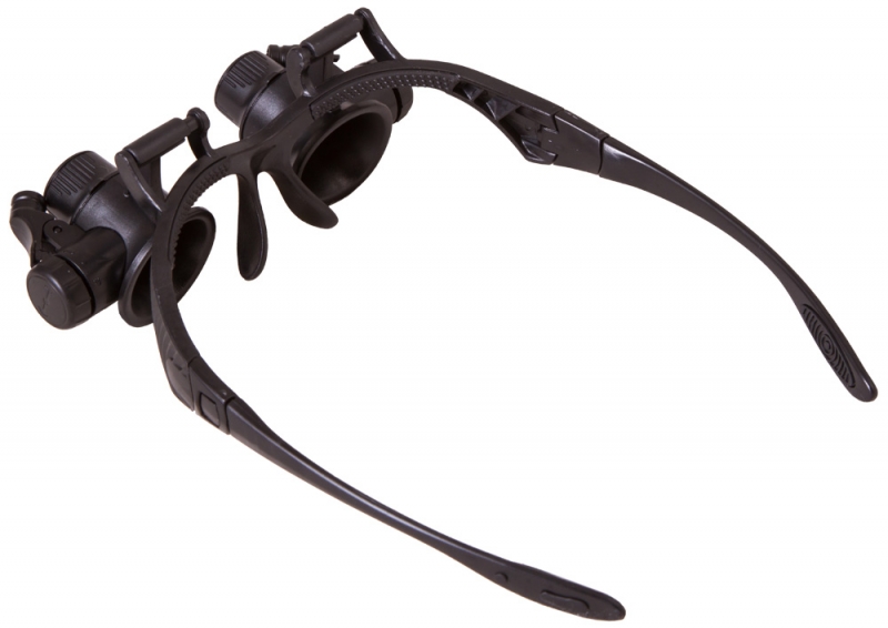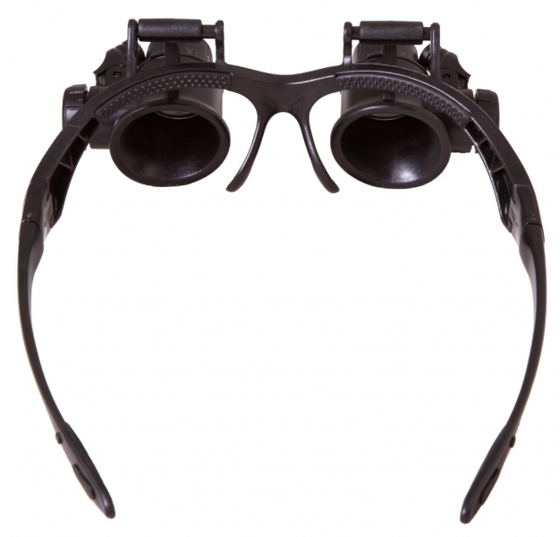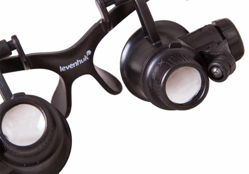 Сменные линзы позволят подобрать оптимальную кратность для решения задач любой сложности. Линзы парные, сделаны из оптического пластика. Во время наблюдений любую линзу можно отвернуть наверх, не снимая ее полностью с оправы, что позволяет изучать рабочую область без увеличения. На каждой линзе размещен яркий светодиод. Световой луч подсветки можно направлять смещением основания подсветки.
