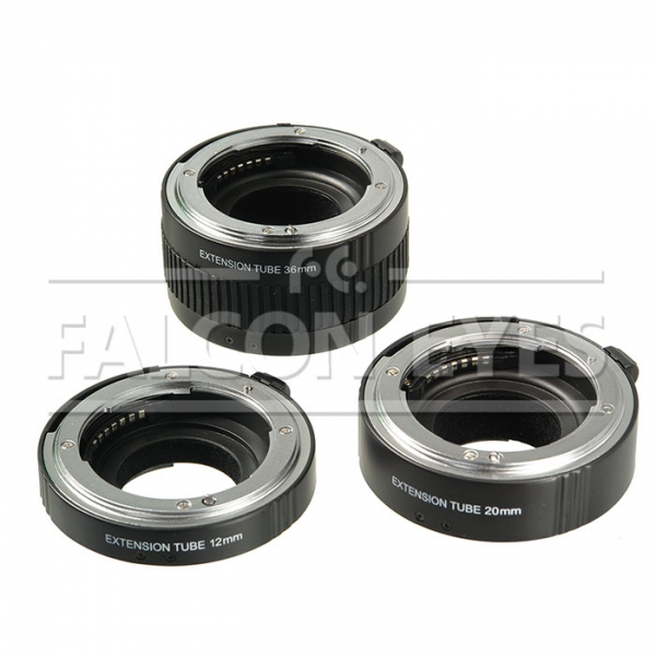Набор удлинительных колец с поддержкой автофокуса, используются для макросъемки. За счет увеличения рабочего отрезка позволяют фокусироваться с более близкого расстояния и снимать объекты в увеличенном масштабе. Изготовлены из алюминия и ударопрочного пластика. Макрокольца устанавливаются между объективом и корпусом камеры с помощью байонетного крепления, не имеют линз — поэтому не вносят в изображение оптических искажений и не ухудшают качество изображения. С помощью удлинительных колец можно создавать макрофотографии, не покупая дорогостоящие макрообъективы. Удлинительные кольца имеют контакты передачи сигнала, поэтому сохраняются все функции объектива, такие как автоматическая фокусировка (AF) и регулировка диафрагмы. Данные макрокольца совместимы со всеми объективами Nikon AI. Комплект макроколец включает в себя три удлинительных кольца 12 мм, 20 мм и 36 мм. Удлинительные кольца можно устанавливать по отдельности или комбинировать в любом порядке. Возможны 7 вариантов комбинации: 12 мм, 20 мм, 36 мм, 32 мм, 48 мм, 56 мм, 68 мм.