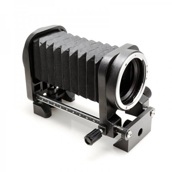 Макромех FJ-MR2151 для установки между объективом и камерой Canon EOS. Предназначен для изменения рабочего отрезка и сокращения минимального расстояния до объекта при макросъёмке. По сравнению с удлинительными кольцами меха способны обеспечить плавное бесступенчатое выдвижение объектива в большом диапазоне. Позволяют использовать для макросъёмки обычные объективы, возможно достичь очень больших увеличений (например, 20:1)