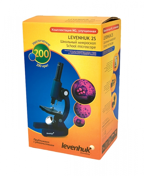 Levenhuk 2S NG – это качественный биологический микроскоп, доступный каждому. Он предназначен для изучения прозрачных микропрепаратов в проходящем свете. Просветленная стеклянная оптика и надежный металлический корпус, простота в обращении – эти качества делают его отличным микроскопом для любознательного подростка. Максимальное увеличение, которое обеспечивает этот микроскоп, составляет 200х – этого мало для серьезных исследований, но вполне достаточно для того, чтобы сделать первые шаги в микромир. Окуляр и объектив микроскопа расположены на одной линии, но есть возможность наклонить оптическую трубку микроскопа вместе с предметным столиком для удобства наблюдений (стоит учесть что при работе с жидкими микропрепаратами возможно их стекание). В конструкции микроскопа используется ахроматический объектив, благодаря чему существенно уменьшены искажения изображения. Все линзовые элементы оптики изготовлены из высококачественного оптического стекла и имеют многослойное просветляющее покрытие. Освещение микропрепаратов производится с помощью вогнутого зеркала диаметром 40 мм, благодаря чему микроскоп не требует ни батареек, ни подключения к электросети. За зеркалом расположен диск с диафрагмами, с использованием которого можно регулировать количество поступающего на микропрепарат света для создания оптимальных условий освещенности. Предметный столик размером 90х100 мм снабжен держателями для микропрепаратов. Большой ход механизма фокусировки позволяет работать с микроскопом даже людям с сильной близорукостью или дальнозоркостью. Корпус микроскопа полностью металлический, что положительно сказывается на долговечности прибора, а благодаря его массивному основанию практически исключен риск случайного опрокидывания микроскопа во время работы. Технические характеристики Тип микроскопа: биологические Тип насадки: монокулярные Материал оптики: оптическое стекло Увеличение, крат: 200 Окуляры: H12,5x Объективы: 16x (ахроматический) Предметный столик, мм: 100х90, с препаратодержателями Диафрагма: дисковая Фокусировка: грубая, 20 мм Подсветка: зеркало Назначение: школьные/учебные, детские, детские Расположение подсветки: нижняя Метод исследования: светлое поле