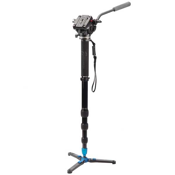 Подвижная быстросъемная площадка дает возможность балансировки камеры с длиннофокусной оптикой. Удобен в использовании — благодаря нижней базе с тремя подвижными ножками легко достигается плавное панорамирование и обеспечивается надежная опора. Видеомонопод трипод оборудован ремнём с карабином для удобства съёмки и эксплуатации. Специальная резиновая накладка обеспечивает комфортную эксплуатацию и защиту рук в холодное время года. Цанговые зажимы ног позволяют в считанные мгновенья подготовиться к съёмке. Видеомонопод изготовлен из алюминиевого сплава, зажимы из инженерного пластика — благодаря этому вес HDV Elite составляет всего 2 кг. Идеально подойдет для выездных съемок (свадебные, спорт и т. д.)
