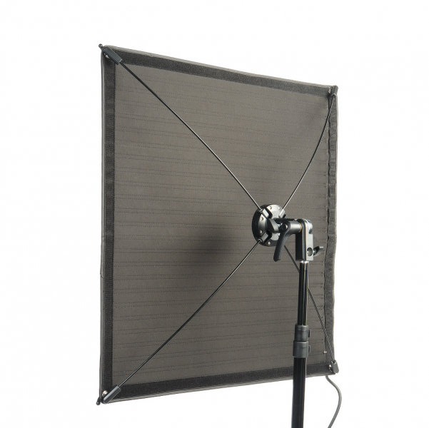 Для питания осветителя можно использовать батарею V-mount (приобретается отдельно) или сеть, подключая прибор через сетевой адаптер. В комплект входит складной держатель X-mount для легкой установки осветителя и сумка для переноски и хранения.