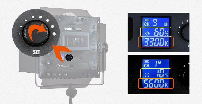 • Три модели для выбора нужных световых эффектов - Белый свет (5600K), желтый свет (3300K) и Bi-color (3300K-5600K)