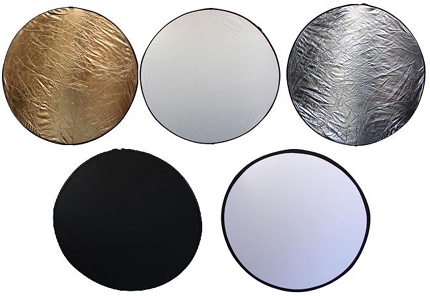 Мультиотражатель 5 в 1, диаметр 110 см. 5 цветов: просветный, черный, белый, серебряный, золотой. |