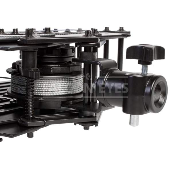 Крепление осуществляется соединителем диаметром 5/8 дюйма (16мм) и имеет двойную защиту тросиком толщиной 2мм (индекс безопасности 12). Возможность регулировки амортизатора позволяет настроить нагрузку от 0 до 15кг. Упругость амортизатора зависит от массы груза (если нагрузка большая, амортизатор должен быть жестким; в противном случае, амортизатор должен быть ослаблен). Это обеспечивает плавность движений.