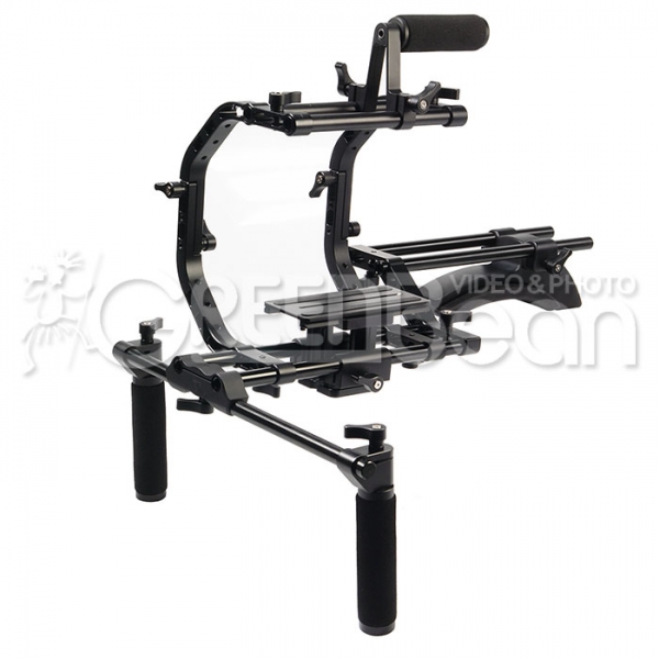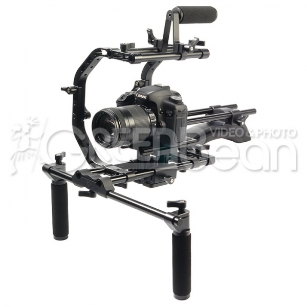 Устанавливается на 15 мм рельсовые направляющие. Для правильного баланса всей конструкции наплечник сделан из металла, прилегает к плечу удобной и мягкой поролоновой вставкой с износостойким покрытием. При необходимости может быть дополнен противовесом GreenBean GB-CW 25 (приобретается отдельно). Снизу расположены два отверстия с резьбой 1/4" и 3/8".