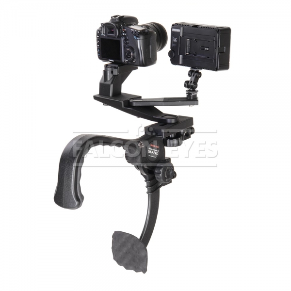 Легкий, компактный (в сложенном положении) наплечный штатив для фото и видеосъемки. Благодаря использованию жесткого и прочного инженерного пластика, металлических осей, в статике он выдерживает нагрузку до 5 кг. Однако, с учетом рывков и толчков, возникающих при съемке в движении, его не рекомендуется использовать с аппаратурой весом более 1,5 кг. Конструкция представляет из себя «коромысло» — задняя часть которого является наплечником с мягкой резиновой вставкой, а передняя — несущей площадкой для крепления подвижного узла с установочным местом для камеры и осветителя (микрофона).