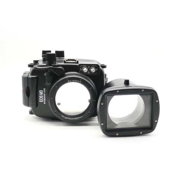 Подводный бокс (аквабокс) Meikon для фотоаппарата Canon EOS M3 Kit (22 мм) Подводный бокс (Аквабокс) для фотоаппарата Canon EOS M3 со сменными портами. Байонет Type3. Приятно удивит подводных фотографов простотой использования и надежностью. Глубина погружения данного бокса до 40 метров, используемые материалы при изготовлении - прочный поликарбонат, закаленное стекло, нержавеющая сталь. Два оптоволоконных порта позволяют подключить к боксу внешние подводные вспышки для получения ярких и красивых фотографий подводного мира. Подводный бокс имеет сертификат IPX8 & CES. В комплекте поставляется со сменными портами к объективам Canon EOS-M 22mm. Аквабокс имеет удобную эргономику и поддерживает полный функционал фотоаппарата.