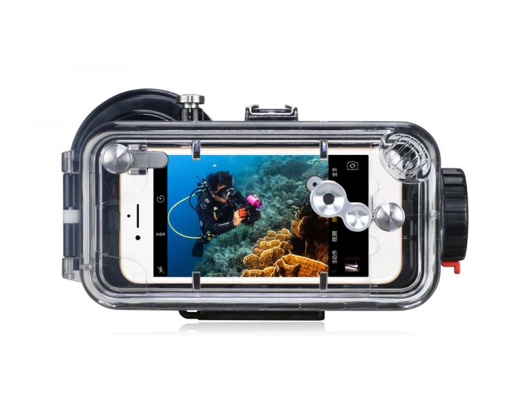 Подводный бокс для Apple iPhone 7Plus сделан из прочного поликарбоната.