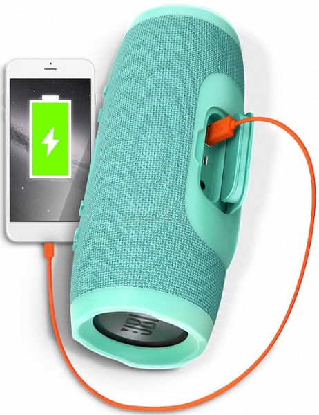 JBL Charge 3 представляет собой невероятно стильную, с интересным запоминающимся эргономичным дизайном, водонепроницаемую портативную акустическую систему. Она поддерживает беспроводную передачу данных и может быть сопряжена со множеством современных девайсов, поддерживающих технологию Bluetooth. Также колонка способна обеспечить необходимым зарядом любое совместимое устройство посредством разъема USB. Зарядка осуществляется даже тогда, когда JBL Charge 3 выключена.
