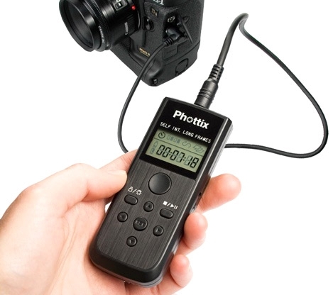 Phottix® Nikos является интервалометром, т.е. цифровым таймером, предназначенным для спуска затвора фотокамеры через определённые промежутки времени.