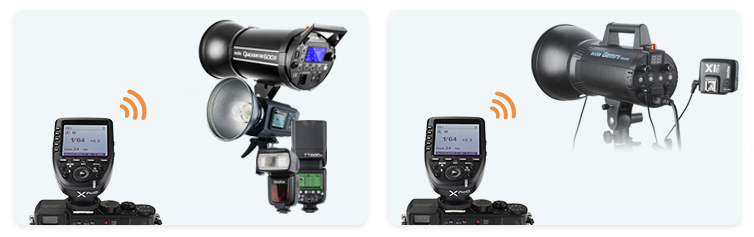 Встроенная система беспроводной синхронизации Godox 2,4G X В качестве беспроводного синхронизатора вспышек Godox (накамерных, аккумуляторных и студийных вспышек) В качестве пульта управления вспышкой (без системы Godox X) с гнездом для синхрокабеля 2,5 мм