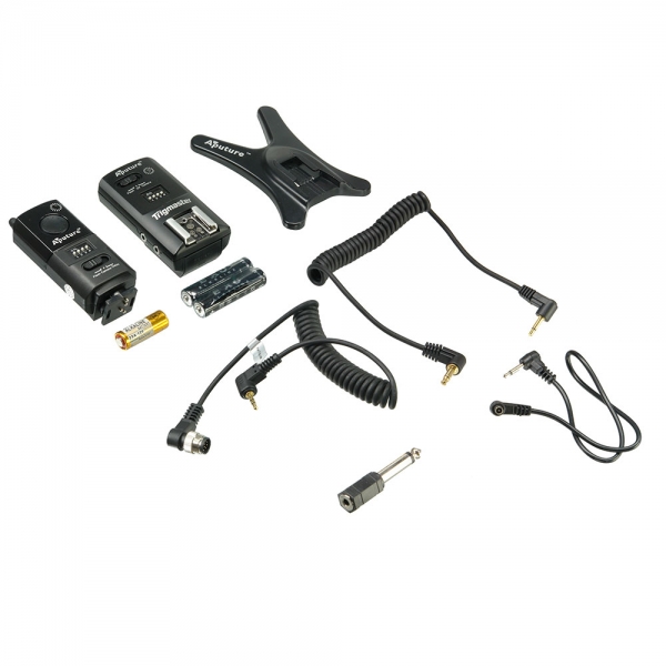 При использовании устройств Canon или Nikon для управления вашей фотовспышкой скорость синхронизации достигает 1/250 секунды, а расстояние дистанционного управления — 100 метров (на открытой местности). В комплекте: две батарейка типа ААА, одна батарейка типа 23А, синхрокабель 2,5 мм — PC, синхрокабель 2,5 мм — 3,5 мм, синхрокабель 2,5 мм — синхроконтакт камеры (см. таблицу совместимости), переходник 3,5 мм — 6,3 мм.