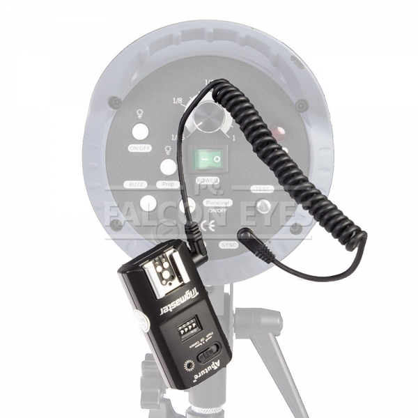 • Синхронизация по одному из каналов со студийной вспышкой - передатчик устанавливается в "горячий башмак" камеры, а приемник через синхрокабель подключается к студийной вспышке.
