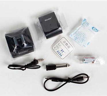 - 3,5-мм разъем PC-Sync на приемниках позволяет подключать их к студийным приборам с помощью кабеля и переходника на 6,3 мм (есть в комплекте)
