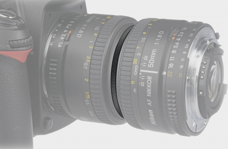 Реверсивное кольцо предназначено для макросъемки. Позволяет присоединить один объектив на другой в перевернутом положении. Кольцо вкручивается в резьбу светофильтра одной стороной в один объектив, а другой стороной в другой объектив, после этого такая связка присоединяется к камере. Благодаря реверсивному кольцу вы сможете снимать мелкие объекты с очень большим увеличением, не тратя много средств на специальные макрообъективы. Обычно в качестве объектива, который работает в обычном режиме и присоединен к камере, используют длиннофокусный объектив, а в качестве второго (реверсивного) объектива используют короткофокусный объектив. В противном случае будет сильное виньетирование. Если в качестве основного объектива используется автофокусный объектив, то возможность автофокусировки сохраняется.