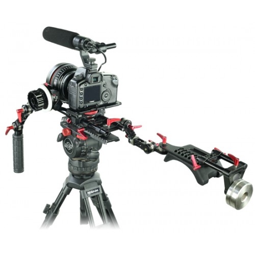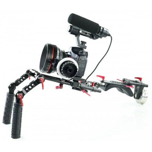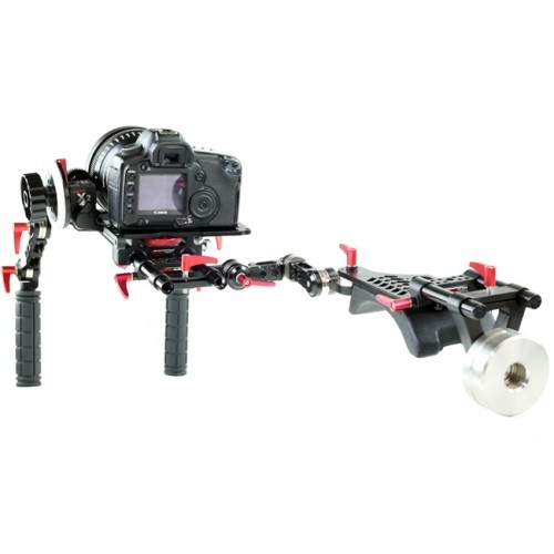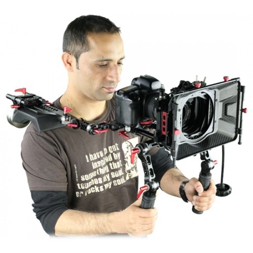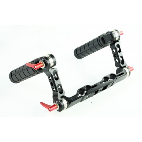 - Рукоятки. Рукоятки с мягкими ручками с противоскользящими покрытием обеспечивают оператору прочный хват во время работы, тем самым обеспечивая максимальный комфорт во время даже самой продолжительной съемки. Положение рукояток регулируется и надежно фиксируется при помощи двойного замка в любой позиции. Рукоятки можно установить как на 15-мм, так и на19-мм рельсовую опору.