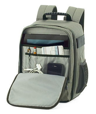 В него войдут: компактная зеркальная или беззеркальная камера со штатным объективом, два-три дополнительных объектива, вспышка, планшет и аксессуары. Основное отделение моделируется уплотненными перегородками. Для планшета предназначен дополнительный отсек на молнии, в который встроены кармашки для мелочей. В боковой сетчатый карман можно поместить компактный штатив или бутылку воды. Для увеличения вместительности на рюкзак навешивается дополнительное оборудование с помощью фирменной системы SlipLock. Внутренние габариты 21,5x11,5x28,5 см, внешние 24х19,5х32 см. Компактность и привлекательный дизайн нового рюкзака, несомненно, понравятся девушкам-фотографам.