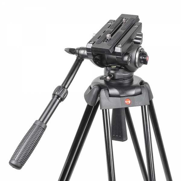 Штатив Falcon Eyes CinemaPRO VT-1800 Штатив Falcon Eyes CinemaPRO VT-1800 предназначен для стабилизации изображения при видеосъёмке видеокамерами или зеркальными фотоаппаратами весом до 5 кг. Чаша 75 мм. Ножки штатива изготовлены из алюминиевых трубок (диаметр 20 и 25 мм), зажимы секций – из прочного пластика. Максимальная высота 180 см. Подготовка штатива к работе происходит быстро и легко. Купить штатив Falcon Eyes CinemaPRO VT-1800 можно видеографам и видеооператорам, которые работают на выезде и нуждаются в профессиональном устройстве для надежной фиксации камеры, а также возможности осуществлять съемку с плавным панорамированием по горизонтали и вертикали. Жидкостная голова для съемки видео Съёмная голова с жидкостным демпфированием и системой постоянного контрбаланса поворачивается на 360˚ по горизонтали, наклоняется вперёд и назад на углы от -80° до +90°, имеет независимые фиксаторы панорамирования и независимый регулятор вертикального демпфирования. Голова изготовлена из алюминиево-магниевого сплава. Благодаря жидкостному демпфированию все движения происходят плавно и без рывков. Дополнительно голова оснащена предохранителем площадки, кнопка которого находится на левой стороне. На быстросъёмной площадке предусмотрен винт диаметром 1/4" и 3/8“ (входят в комплект), подпружиненный штифт и противоскользящая вставка. Также на левой стороне головы есть два отверстия с системной резьбой 1/4" и 3/8“ для установки дополнительного оборудования или, в зависимости от резьбы на вашей камере, в одно из отверстий можно ввернуть «лишний» винт для исключения его потери. Площадку можно смещать вперёд и назад. Телескопическая рукоятка Рукоятка может устанавливаться как слева так и справа от головы. Рукоятка крепится к головке через зубчатое соединение, что полностью исключает люфт и прокручивание. Длина рукоятки регулируется в пределах 300-450 мм. Три секции ног Ножки штатива вилочного типа. Секции ног надежно фиксируются клипсовыми замками. На концах штативных ног размещены парные шипы, на которые надеваются резиновые "башмаки". Таким образом, можно выбрать необходимый тип опоры для различных условий съемки. Шипы используются вне помещений, например для устойчивости на грунте или на льду, а резиновые опоры обеспечивают отличное сцепление на скользких и гладких поверхностях для защиты поверхности пола от царапин и повреждений. Для усиления штатива используется верхняя растяжка, которая не позволяет ногам разъезжаться и обеспечивает быстрое затухание колебаний. Пузырьковый уровень Штатив оборудован пузырьковым уровнем установленным на корпусе головы для выставления камеры в горизонтальной плоскости. Сумка в комплекте Для удобной транспортировки и хранения штатив комплектуется сумкой-чехлом на молнии с ручками и регулируемым по длине наплечным ремнём.