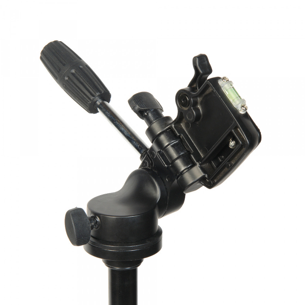 Плавно, с усилием поворачивать камеру на 360° вокруг своей оси и на –90 до +45° по вертикали позволяет 3D-штативная голова со съемной рукояткой (13 см). Голова сменная, выполнена из алюминиево-магниевого сплава. Градуированная шкала и пузырьковый уровень помогают отрегулировать угол наклона камеры. Быстросъемная площадка оборудована винтом 1/4” для установки оборудования. Основание для площадки можно поднять на 90° и зафиксировать винтовым зажимом. Таким образом положение камеры можно изменять по трем осям для точного позиционирования во время съемки.