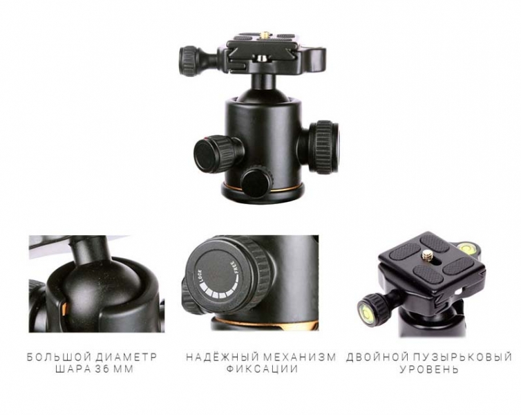 - Шаровая штативная головка с возможностью вращения на 360° для съёмки панорам (в комплекте)
