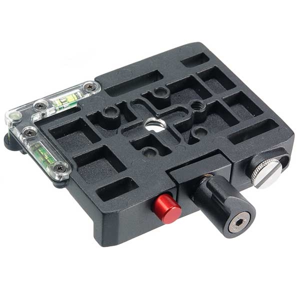 Предназначен для создания посадочного места типа «быстросъемная площадка» на риге, слайдере, обычной штативной голове, носимых стабилизаторах камер, кронштейнах (типа GB-DV01). Имеет два пузырьковых уровня для выставления камеры в горизонт. Адаптер состоит из базы и подвижной площадки. База имеет пять резьбовых отверстий 1/4 дюйма и одно отверстие 3/8 дюйма — для крепления к несущей опоре. На подвижной площадке имеется паз длиной 45 мм для перемещения винта камеры (винт сменный 1/4-3/8 дюйма в комплекте, заменяется после снятия резиновой заглушки в конце паза). В «отпущенном» положении площадка может передвигаться по базе в пределах 55 мм, нужное положение фиксируется удобным зажимным винтом. Красная кнопка-предохранитель — от случайного падения камеры с площадкой при отпущенном зажимном винте. Аналог площадки Manfrotto 577.