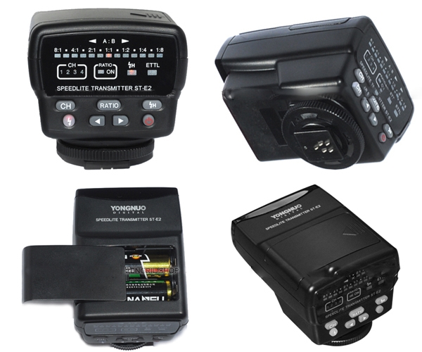 Синхронизатор YongNuo ST-E2 - беспроводной синхронизатор управления вспышками. Позволяет управлять двумя группами ведомых вспышек с контролем соотношения мощности импульса между каждой группой. Является полнофункциональным аналогом оригинального устройства Canon ST-E2