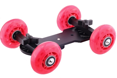 Скейтер Dolly представляет собой мини-тележку, позволяющую получить плавное движение в кадре с изменением перспективы. Для работы подходит любая ровная поверхность. Скейтер быстро собирается и легко настраивается, движется гладко и плавно благодаря мягким колесам. Колеса могут поворачиваться в разные стороны, благодаря чему камера может двигаться как по прямой, так и по кругу.