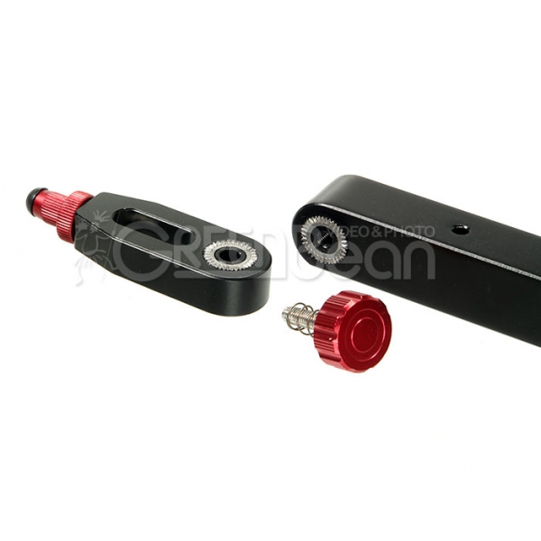 Каретка оборудована стопорным винтом с двусторонним стояночным тормозом, при завинчивании рукоятки происходит одновременный выпуск двух тормозных колодок, которые надежно фиксируют каретку, благодаря этому слайдер можно использовать даже с тяжелыми профессиональными камерами.
