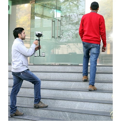Компактные размеры и небольшой вес стедикама позволяют с легкостью менять его положение. В то же время стедикам прочно и надежно фиксирует камеру. Даже во время самой динамичной съемки можно не беспокоиться о соскальзывании камеры или появлении тряски и вибрации в кадре. Удобная рукоятка с мягким противоскользящим покрытием позволяет точно регулировать положение стедикама и защищает камеру от механических повреждений в процессе работы. Еще одним преимуществом данной модели стедикама является его быстрая и простая сборка в сравнении с ее современными аналогами. Стедикам оборудован мягким подшипником, который позволяет регулировать положение камеры по двум осям.