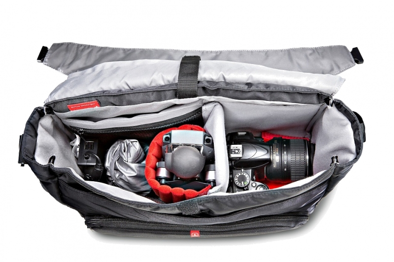 Сумка Befree Messenger оснащена внутренним карманом для переноски штатива Befree (размер кармана 10х40х10 см). Съемные мягкие разделители, разработанные с использованием Manfrotto Protection System, не только позволят удобно и эргономично расположить необходимое оборудование, но и надежно защитят вашу фотокамеру, объективы, вспышку и пр. Второй вариант размещения: зеркальная фотокамера с установленным объективом, дрон DJI Mavic Pro (дрон, контроллер, две батареи и зарядное устройство) и стабилизатор DJI Osmo. В сумке предусмотрено специальное отделение для ноутбука, размером до 15 дюймов, отделение для документов, личных вещей, так же имеется множество удобных карманов для различных аксессуаров. Дополнительная молния в верхней части сумки обеспечивает быстрый и удобный доступ к содержимому. Сумка комплектуется регулируемым плечевым ремнем с удобной противоскользящей накладкой и фирменным дождевым чехлом