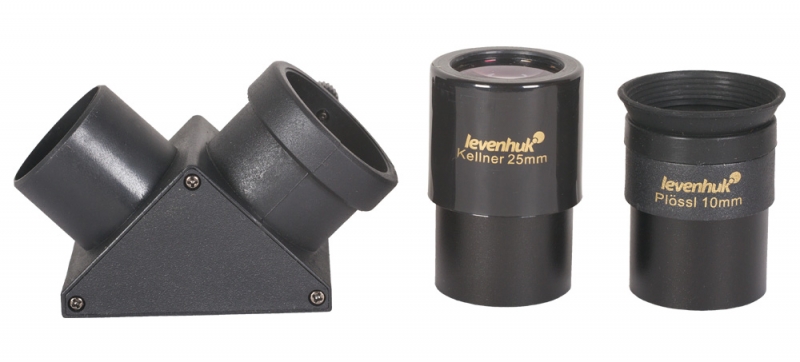 Телескоп Levenhuk Skyline 80 PLUS – это компактный и удобный катадиоптрик, который прекрасно подходит и для планетарных наблюдений, и для знакомства с дальним космосом. Благодаря качественной оптике картинка получается четкой и контрастной, без искажений. Небольшие размеры позволяют легко перевозить телескоп – вы сможете брать его за город, чтобы полюбоваться потрясающим звездным небом вдали от городских огней. Особого внимания заслуживает надежная, удобная и удивительно простая в управлении азимутальная монтировка нового дизайна. Оптическая труба собрана по катадиоптрической схеме – это позволило соединить большое фокусное расстояние с весьма компактными размерами. На оптические поверхности нанесено многослойное просветляющее покрытие, а на зеркальные – алюминиевое покрытие, повышающее коэффициент отражения. Такое сочетание позволило свести к нулю возможные аберрации и повысить качество изображения. Для легкого поиска астрономических объектов используется удобный искатель с красной точкой. Проекция точки хорошо различима и в темном ночном небе, и в светлое время суток. В комплект входят два окуляра. Окуляр с фокусным расстоянием 25 мм подходит для обзорных наблюдений и поиска небесных тел, а окуляр 10 мм позволяет изучать с большим увеличением интересующие вас объекты.
