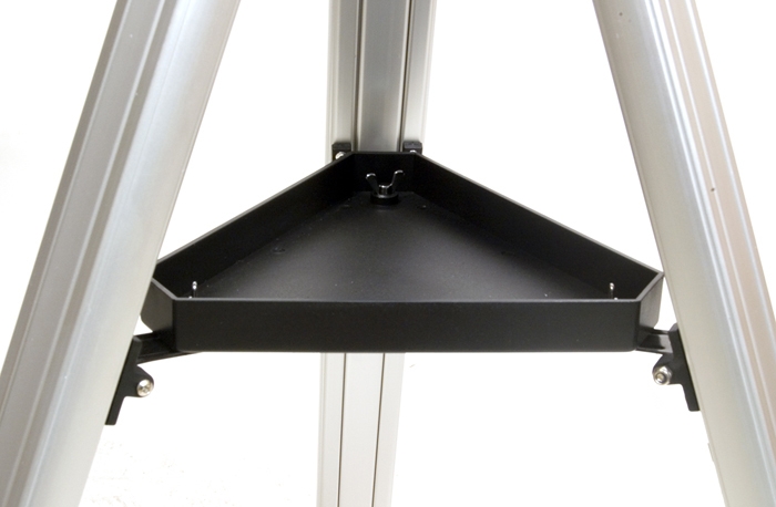 Линзовые поверхности телескопа имеют просветляющее покрытие, которое обеспечивает максимальное светопропускание, а отражающие – защитный слой, увеличивающий срок их службы. Очень компактная и легкая алюминиевая труба установлена на экваториальную монтировку, оснащенную ручками тонких движений и допускающую установку электропривода часовой оси. Такая монтировка имеет специальные координатные круги, с помощью которых, после несложной настройки, можно находить объекты по их экваториальным небесным координатам, а также сопровождать суточное движение объекта вращением только одной ручки. Тренога регулируется по высоте и имеет удобную полочку для принадлежностей. На выходной втулке имеется стандартная Т-резьба, которая, через дополнительное переходное кольцо, позволяет присоединять к телескопу зеркальную фотокамеру и производить съемку Луны и других ярких объектов.