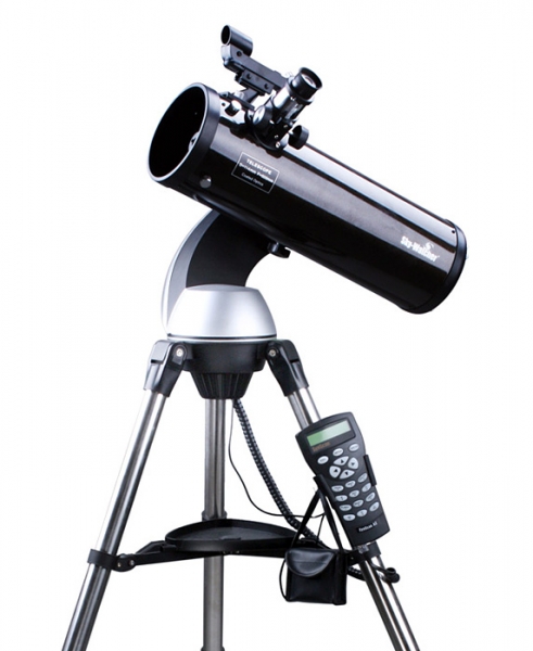 Оптическая труба устанавливается на азимутальную монтировку. Моторные приводы по обеим осям обеспечивают плавное перемещение трубы. Удобный пульт отличается интуитивно понятным интерфейсом. В базе данных монтировки содержатся координаты 42 900 небесных тел. Чтобы начать наблюдения, пользователю нужно выбрать любое из них и нажать на кнопку на пульте. Телескоп автоматически найдет выбранный объект, наведется на него и будет следовать за ним в течение всего времени наблюдения. Устойчивая тренога гарантирует стабильное положение телескопа. Тренога снабжена лотком для аксессуаров.