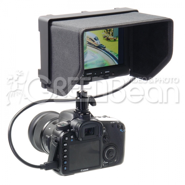 - Широкие возможности. Видеомонитор со светодиодным экраном диагональю 7 дюймов, разрешением 800х480, высокой контрастностью и яркостью, широким углом обзора, предназначен для использования с DSLR камерами, профессиональными камкордерами и другими операторскими системами в качестве дополнительного видоискателя на кране, стедикаме, плечевом упоре и т.д.. Применяется для мониторинга видеосигнала в режиме реального времени через интерфейсы HDMI, VGA и AV и просмотра снятого изображения. Видеомонитор поддерживает специальные функции, которые помогают оператору добиться лучшего качества изображения – фокус-ассистент, маркеры экрана и центральной точки, переворот изображения, настройка баланса белого и другие.
