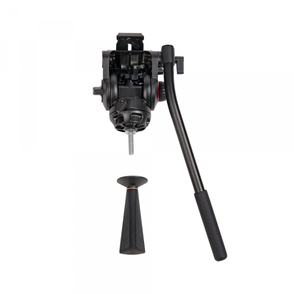 Съёмная голова с жидкостным демпфированием и системой постоянного контрбаланса поворачивается на 360˚ по горизонтали, наклоняется вперёд и назад на углы от -70° до +90°, имеет независимые фиксаторы панорамирования и независимый регуляторы вертикального и горизонтального демпфирования. Голова изготовлена из алюминиево-магниевого сплава. Благодаря жидкостному демпфированию все движения происходят плавно и без рывков. Дополнительно голова оснащена предохранителем площадки, кнопка которого находится на левой стороне. Также на левой стороне головы есть отверстие с системной резьбой 3/8“ для установки дополнительного оборудования или, в зависимости от резьбы на вашей камере, можно ввернуть «лишний» винт для исключения его потери. Винтовое крепление головки к штативу выполнено из стали.
