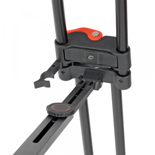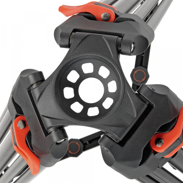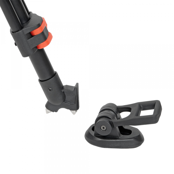 Ножки штатива вилочного типа. Секции ног надежно фиксируются клипсовыми замками. При ослаблении клипсового фиксатора — возможна регулировка зажима винтом с обратной стороны клипсы. Шестигранные ключи для регулировки в комплекте. На концах штативных ног размещены парные шипы, на которые надеваются резиновые "башмаки". Таким образом, можно выбрать необходимый тип опоры для различных условий съемки. Шипы используются вне помещений, например для устойчивости на грунте или на льду, а резиновые опоры обеспечивают отличное сцепление на скользких и гладких поверхностях для защиты поверхности пола от царапин и повреждений. Для усиления штатива используется средняя телескопическая металлическая растяжка, которая не позволяет ногам «разъезжаться». В сложенном виде ножки штатива фиксируются между собой пластиковыми фиксаторами, которые не позволяют штативу разложиться. Минимальная рабочая высота штатива составляет 86 см., максимальная высота 177 см.