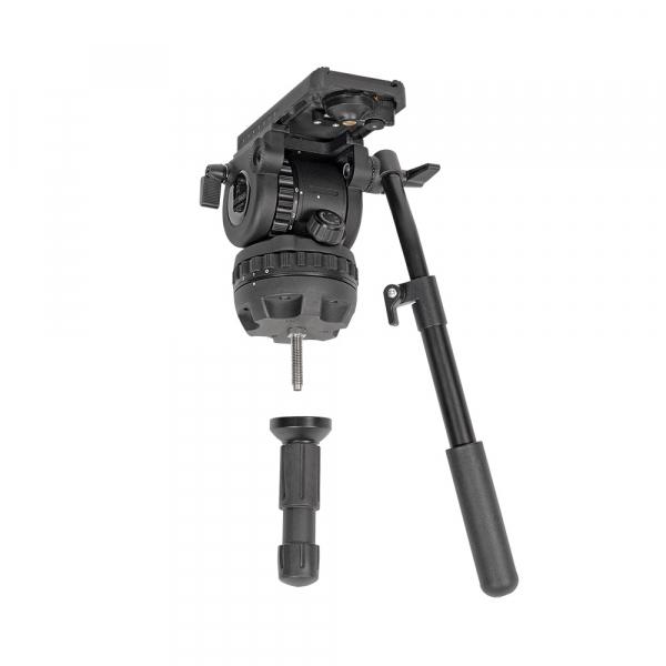 Съёмная голова с жидкостным демпфированием и регулируемой системой контрбаланса поворачивается на 360˚ по горизонтали, наклоняется вперёд и назад на углы от -75° до +90°, имеет независимые фиксаторы панорамирования и независимый регулятор вертикального и горизонтального демпфирования. Регулирование демпфирования в обеих плоскостях осуществляется кольцами с нанесённой цифровой шкалой от 0 (демпфирование отсутствует) до 3 (максимальное усилие).